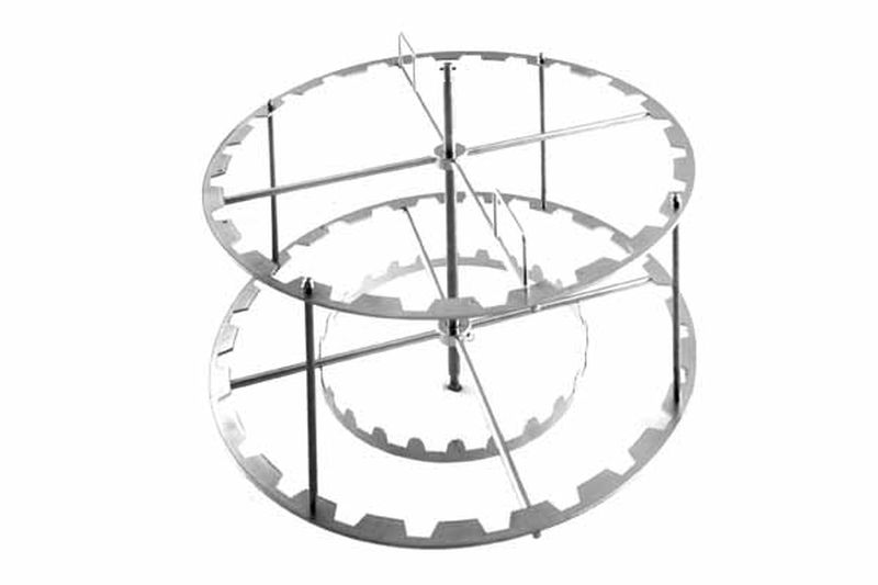 - De radialkorf kan eenvoudig in een tangentiële korf worden omgezet door additioneel vier inhaakroosters voor tangentiële werking (Art. Nr. 7761) te plaatsen. Daarmee kunnen vier grote ramen tot een hoogte van 30 cm worden gecentrifugeerd. In dat geval kan een inhaaktas voor ontzegelingswas (Art. Nr. 7758) worden gebruikt zodat de honing eenvoudig uit de wasdeksels kan lopen.