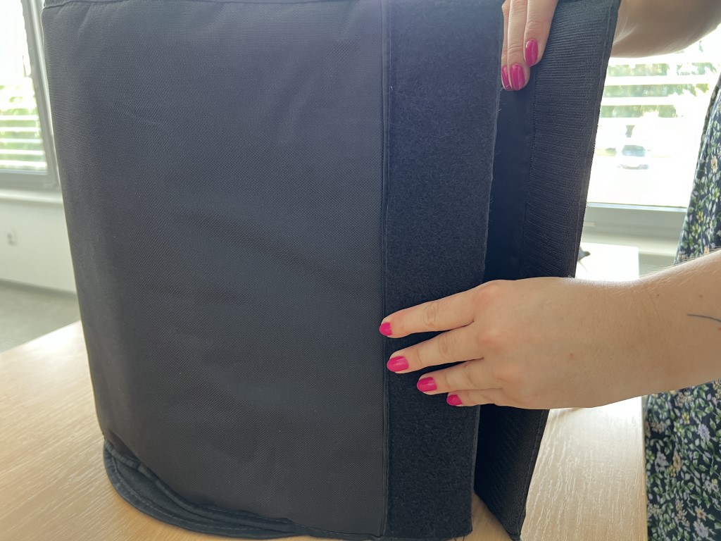 Wikkel de verwarmingsdeken stevig om het vat en bevestig deze met de klittenbandsluiting.