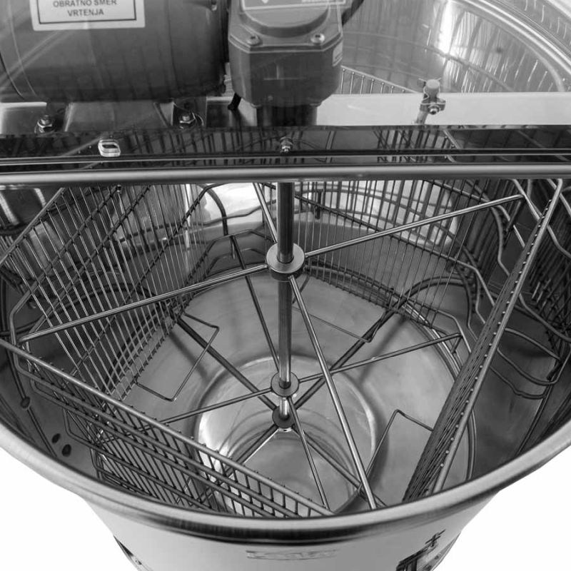 - HOGE STABILITEIT VAN DE HONINGCENTRIFUGE TIJDENS HET CENTRIFUGEREN: het gewicht van de honing in de zeef stabiliseert de centrifuge tijdens het aftappen en stelt de imker in staat hogere toerentallen te gebruiken – een duidelijk voordeel ten opzichte van conventionele, onverzwaarde centrifuges.