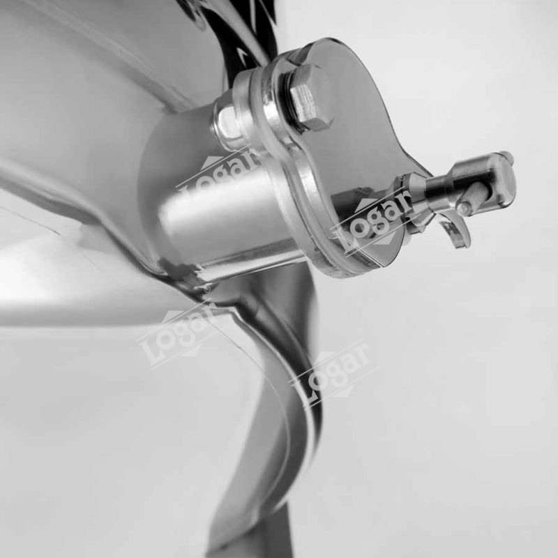 Die Honigschleuder hat zwei rostfreie Quetschhähne. Einer ist am tiefst möglichen Bodenpunkt eingebaut, was gewährleistet, dass der gesamte Honig aus der Honigschleuder abfließen kann.
