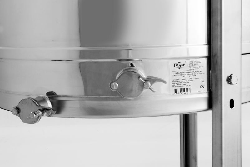 4-raams zelfwendende honingslinger met elektromotor 180 W / 230 V en volledig automatische besturing. Hij heeft een geïntegreerde veiligheidschakelaar die de motor automatisch uitschakelt bij het openen van het deksel. Moderne techniek maakt een innovatieve uitvoering van de bodem van het vat mogelijk. De bodem van het vat is naadloos gelast en naar de aftapkraan toe hellend uitgevoerd. De roestvrije knijpkraan is op het laagst mogelijke punt geplaatst zodat alle honing uit de slinger kan stromen. Alle onderdelen van de slinger die met honing in aanraking komen, bestaan uit voor levensmiddelen toegelaten materialen. Het deksel is van transparant acrylglas.