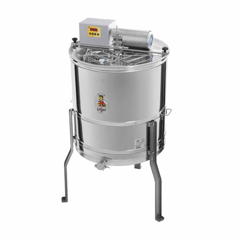 Innovatieve zelfwendende honingcentrifuge met dubbele wabetassen – ontwikkeld om veel lage raten efficiënt te centrifugeren bij een kleine keteldiameter. De 8-ramen zelfwende centrifuge met motor (110 W / 230 V) heeft een volledig automatische regeling en een veiligheidsschakelaar die de motor onmiddellijk uitschakelt bij het openen van het deksel. De dubbelzijdige wabetassen zijn door een plaat gescheiden waarover de honing afloopt. Moderne techniek en een naadloos gelaste ketelbodem, schuin naar de uitloop, zorgen voor een volledige honingafvoer. De roestvrijstalen knijpkraan is op het laagst mogelijke punt vastgelast zodat alle honing kan worden afgetapt. Alle honingaangetaste onderdelen zijn gemaakt van voedselveilige materialen. Het deksel is van transparant acryl en de speciaal ontworpen pootjes garanderen stabiele standzekerheid.