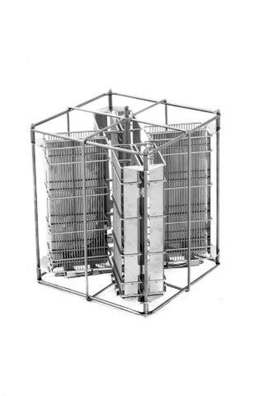 Reserve tangentiële korf met extra middelas voor het centrifugeren van grote raten tot 30 cm hoogte.